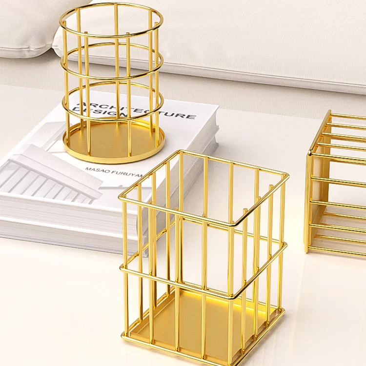 1. Vores holdbare metalpenholder til kontorbord har et strømlinet design af cylindriske og firkantede former, hvilket er enkelt og udsøgt. Galvaniseringsprocessen giver den en elegant glans. Skrivebordsstilen er unik sammenlignet med andre. Pulverbelægningsprocessen tilbyder flere farvemuligheder, der opfylder behovene for forskellige præferencer.