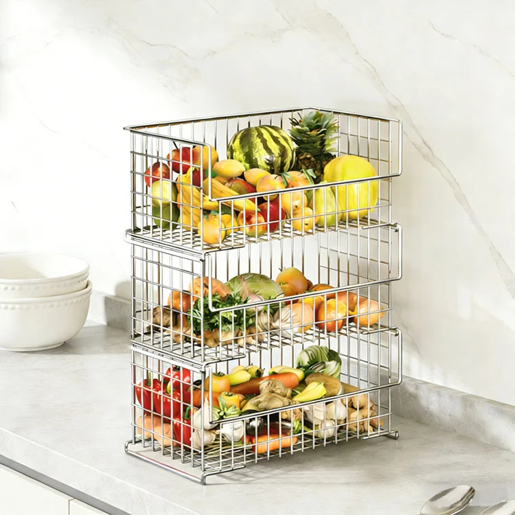 Størrelsesfordele: Størrelsen på en enkelt kurv er velegnet til de fleste skabsdybder, og højden er kontrollerbar efter stabling. Selv i et lille køkken kan det nemt rummes.